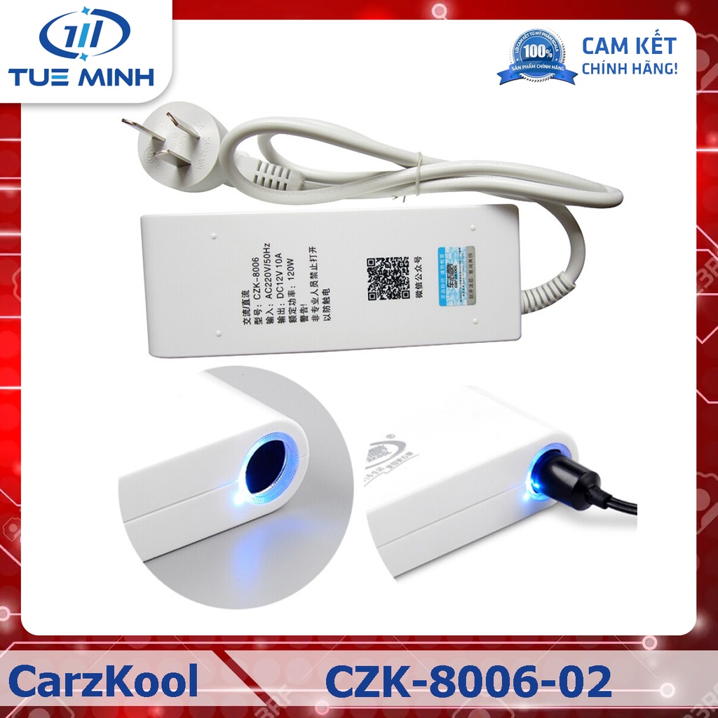 CarzKool CZK-8006-02 là bộ chuyển đổi từ điện 220V ra 12V để sử dụng một số thiết bị điện tử dùng cổng 12V với công suất tối đa 120W.Lưu ý: