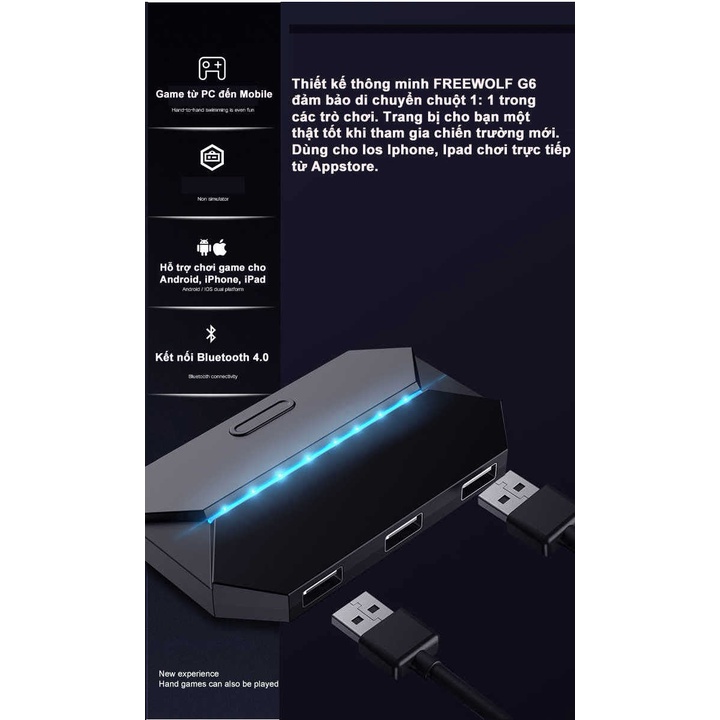 Bộ Chuyển Đổi FREEWOLF G6 hỗ trợ chơi game PUBG Mobile cho Android, IOS, iPad như PC - VL