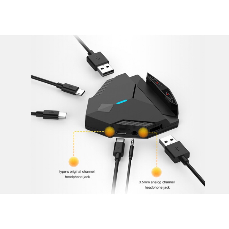 Bộ chuyển đổi chơi game pubg mobile LingZha 2 Pro là bộ chuyển đổi game chơi phím chuột duy nhất trên thị trường tích hợp đầy đủ các cổng kết nối, 3 cổng type C cho sạc,cổng type c truyền tín hiệu và xuất hình ảnh ra màn hình lớn, 1 cổng Audio 3.5 cho tai nghe