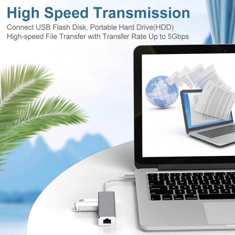 - C to USB/RJ45 Vỏ nhôm, chuyển Type-C sang 3 cổng USB2.0 + 1 cổng RJ45 tốc độ 100Mbps