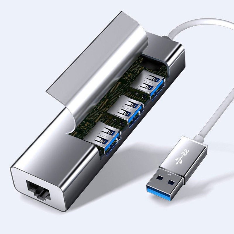 - A to USB/RJ45 Vỏ nhôm, chuyển USB-A sang 3 cổng USB2.0 + 1 cổng RJ45 tốc độ 100Mbps