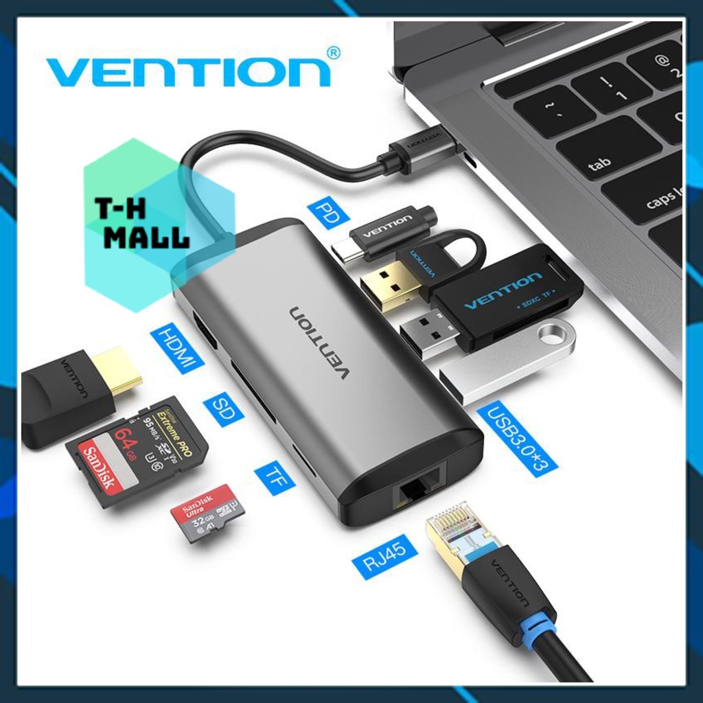 Máy tính & Laptop > Phụ Kiện Máy Tính > Bộ chia cổng USB & Đọc thẻ nhớ || Bộ chuyển đổi hub 8 trong 1 Vention type C to USB3.0 / HDMI / PD / RJ45 / SD / TF card 8 in 1Còn hàng