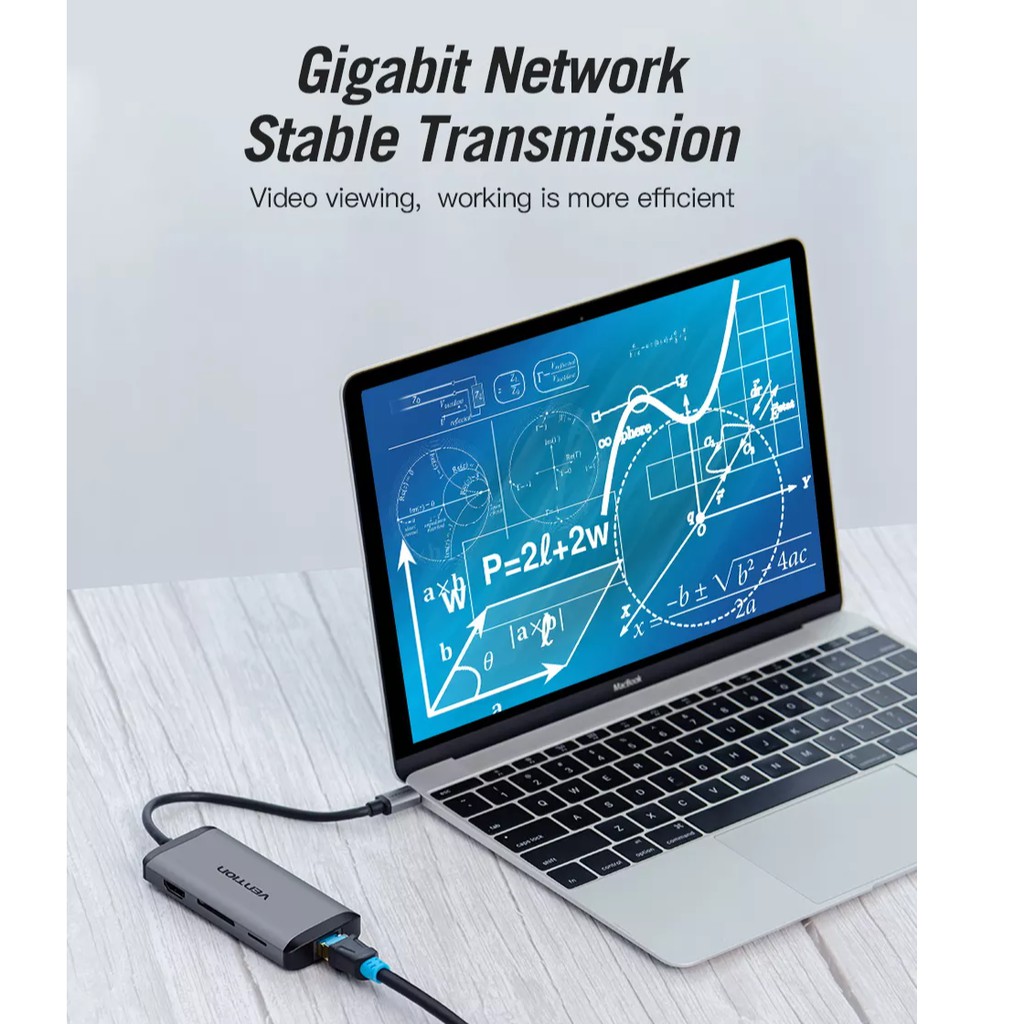 - 6 in 1 Vention 【 USB3.0 x 3 + HDMI + RJ45 1000Mbps + PD 87W 】