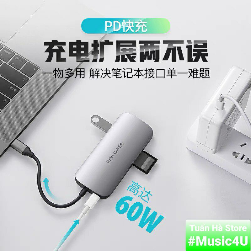 Máy tính & Laptop > Thiết Bị Lưu Trữ > USB & OTG || Bộ chuyển đổi Hub 9 in 1 USB Type C to sang HDMI 4K USB3.0 SD RJ45 3.5mm Vention Aukey RavPower cho Samsung Dex MacbookCòn hàng