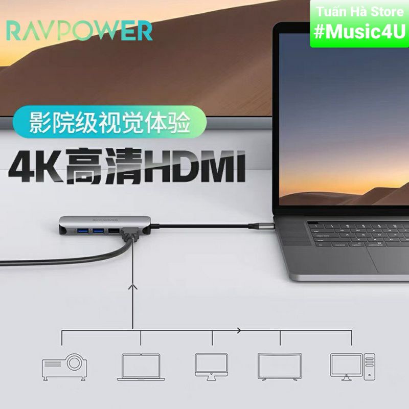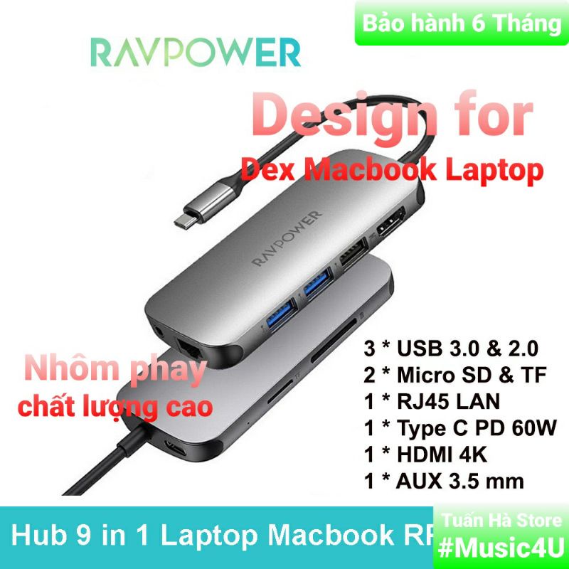 Bộ chuyển đổi Hub 9 in 1 USB Type C to sang HDMI 4K USB3.0 SD RJ45 3.5mm Vention Aukey RavPower cho Samsung Dex Macbook