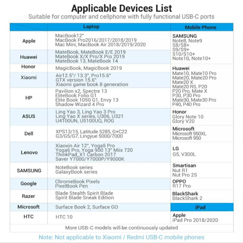 ✅ Hoạt động hoàn hảo với tất cả các thiết bị có cổng Type C hỗ trợ chuẩn MHL (Điện thoại, máy tính bảng, laptop, Macbook), cắm sử dụng ngay, không cần cài thêm Driver.