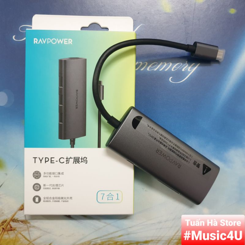 Bộ cáp chuyển đổi Hub 7 in 1 USB Type C to sang HDMI 4K VGA USB3.0 PD Vention Ravpower Aukey cho Samsung dex Macbook