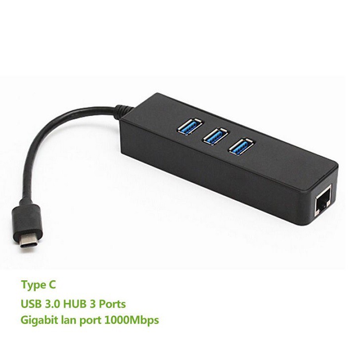 Máy tính & Laptop > Phụ Kiện Máy Tính > Bộ chia cổng USB & Đọc thẻ nhớ || Bộ chuyển đổi Hub USB Type C ra 1 cổng Lan + 3 cổng Usb 3.0Còn hàng