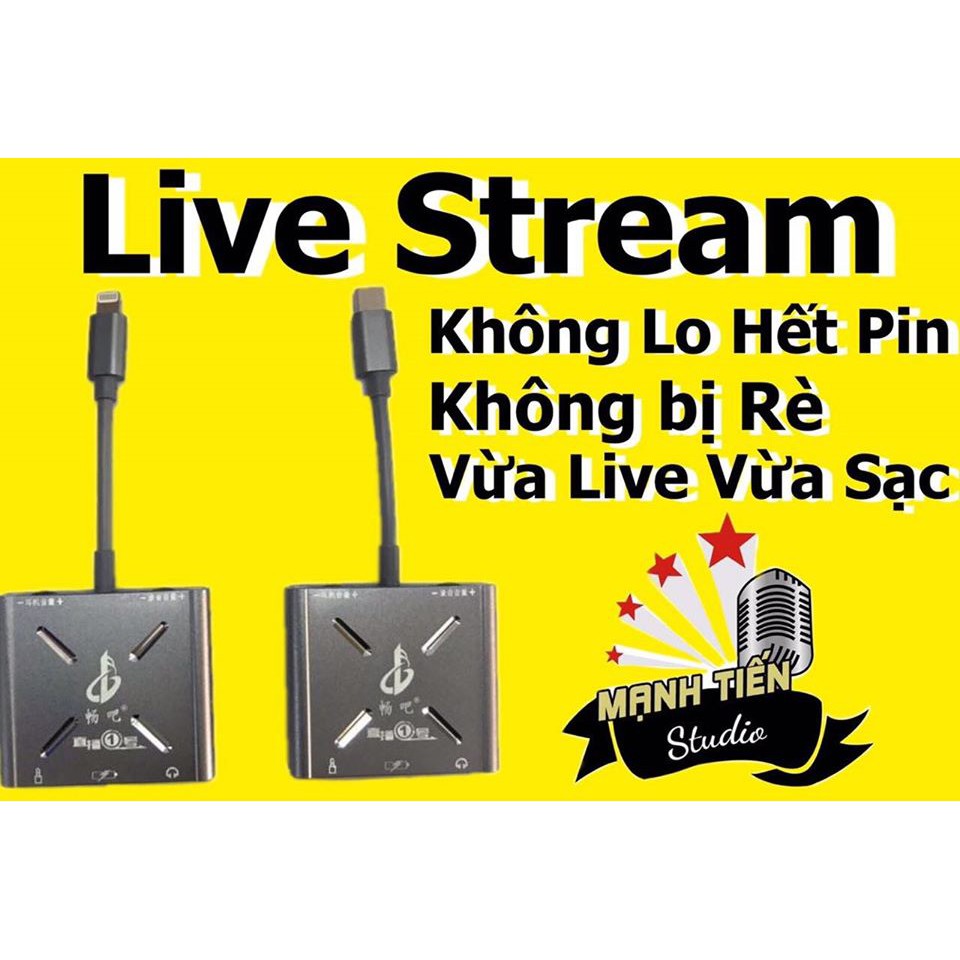 Bộ chuyển đổi dành cho tất cả các loại điện thoại lấy âm thanh từ cổng sạc ra đời. Bộ chuyển đổi Livestream Lightning đa năng. Cho âm thanh Mono, tiện dụng, đơn giản, vừa sạc vừa livestream được. Nay đã có mặt tại Mạnh Tiến Studio, âm thanh chất lượng, có thể PK ở các app, tự hát 1 điện thoại được. Sử dụng được cho tất cả các dòng điện thoại có cổng sạc Lightning.