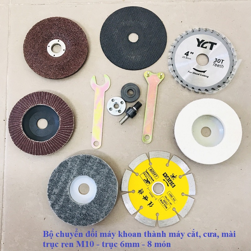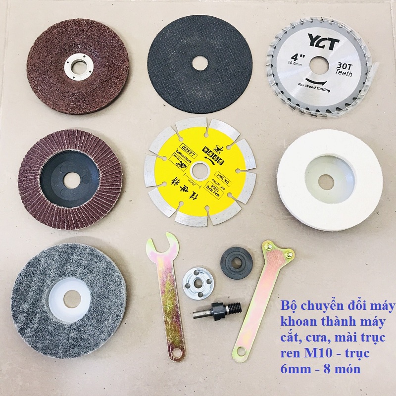 Bộ chuyển đổi máy khoan thành máy cắt, cưa, mài - bộ 8 món