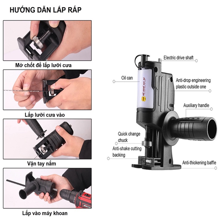 Bộ chuyển đổi máy khoan thành máy cưa lọng đa năng ( Tặng kèm 03 lưỡi cưa )👉👉👉 Phiên bản nâng cấp có bình châm dầu tự động