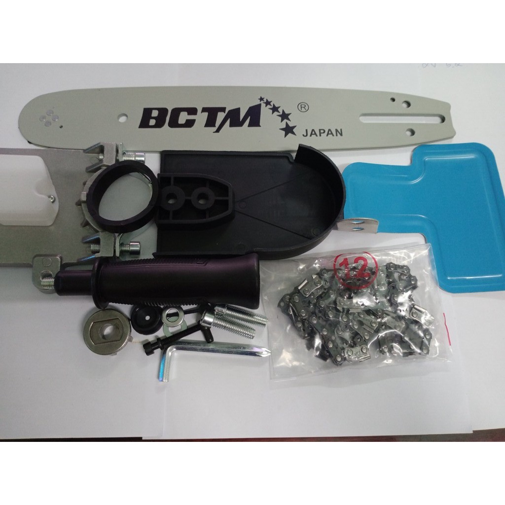 - Giới thiệu sản phẩm Bộ chuyển đổi máy mài góc thành máy cưa xích (BCTM JAPAN 12 ")Máy mài góc là một dụng cụ điện cầm tay đa năng nếu gắn đá mài thì có thể mài các mặt phẳng, khi gắn đá cắt thì biến thành máy cắt có thể cắt được cả sắt, có khi nào bạn nghỉ sẽ biến hóa chiếc máy mài góc thành máy cưa xích chưa??
