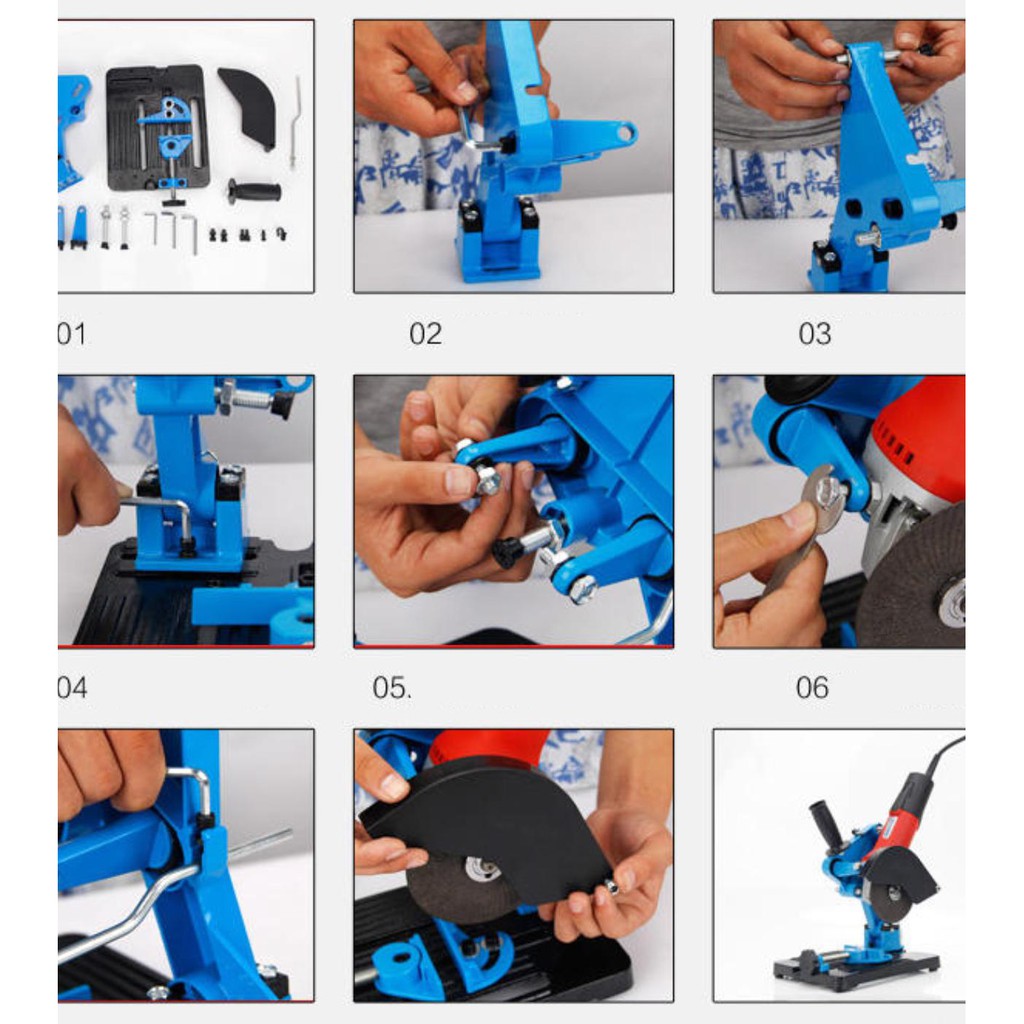 Bộ chuyển đổi máy mài thành máy cắt bànBộ khung gắn máy mài máy cắt cầm tay sẽ biến máy cắt cầm tay thành máy cắt bàn để cắt sắt và cắt ghỗ tiện lợi.
