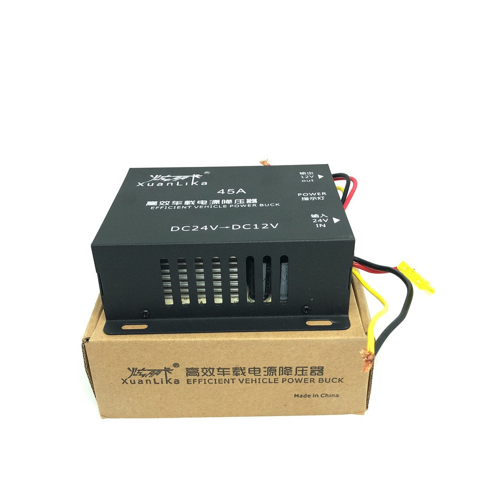 Bộ chuyển đổi nguồn điện 24v xuống 12V 45a Là bộ adapter chuyển đổi dòng điện 1 chiều 24v DC xuống dòng điện DC 1 chiều 12v DC chuyên dụng dành riêng cho oto sử dụng cho camera hành trình hoặc các thiết bị âm thanh sử dụng điện 12v