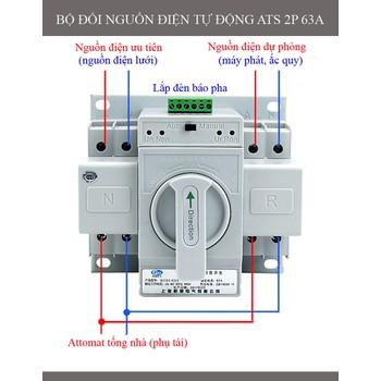 đầu vào đấu công tơ thứ 2 + chuyển nguồn điện tự động theo số ngày cài đặt trước bằng cách sử dụng công tắc hẹn giờ ( dùng để hẹn ngày chuyển từ dùng công tơ 1 sang dùng công tơ 2 và ngược lại) + contactor 63A + bộ ATS-2P-63A. - Sản phẩm ATS -2P-63A cấu tạo đơn n dễ dàng lắp đặt và sử dụng - Các thao tác tiến hành hoàn toàn tự động an toàn không phải thao tác nguy hiểmnhư khi sử dụng cầu dao đảo chiều - Phía trên ảnh đại điện của sản phẩm có video về công năng của sản phẩm mời quý khách hàng tham khảo. - Hoặc quý khách có thể tham khảo link youtube vể sản phẩm:https://www.youtube.com/watch?v=NcATs1I-bU4 THÔNG SỐ KỸ THUẬT: - Điện áp sử dụng: 220V-50/60HZ - Thời gian chuyển: < 2s - Dòng điện cho phép tối đa: 63A. - Có thể sử dụng ATS-2P-63A tự động hoặc thủ công: + Nhấn