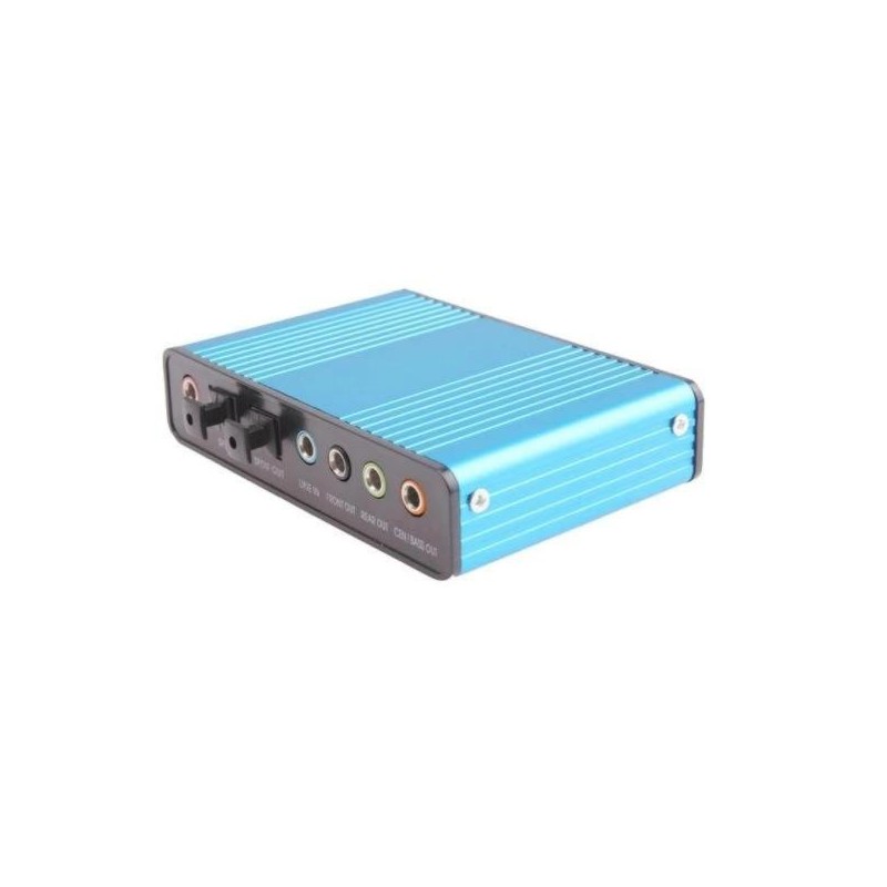 Card sound 5.1 usb Box với thiết kế khá nhỏ gọn,không cồng kềnh như một vài thiết bị khác cùng loại nên khá tiện lợi để có thể mang di chuyển theo người và lắp đặt ở những nơi bạn muốn. Vỏ thiết bị làm bằng hợp kim có độ bền cao với màu xanh lam ánh bạc khá bắt mắt. Các cổng kết nối chắc chắn, không lỏng lẻo đảm bảo chất lượng tín hiệu