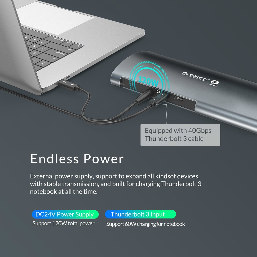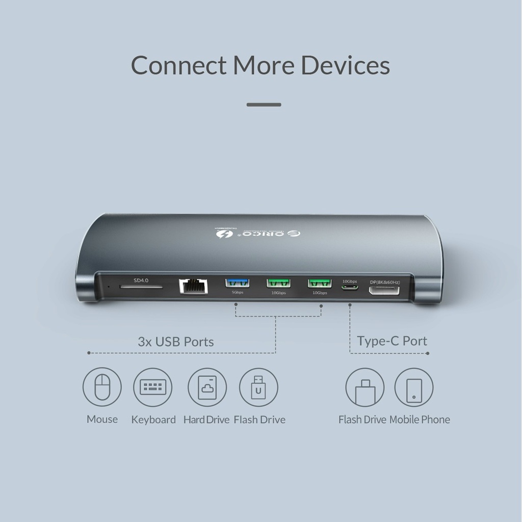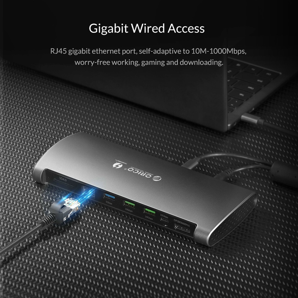Bộ Hub chuyển đổi Orico 8 in 1 Thunderbolt 3 to sang DP 8K 60hz USB 3.0 3.1 SD RJ45 cho máy Macbook Air Pro Dell HP- Đây là bộ Hub cao cấp nhất tại Tuấn Hà Store.