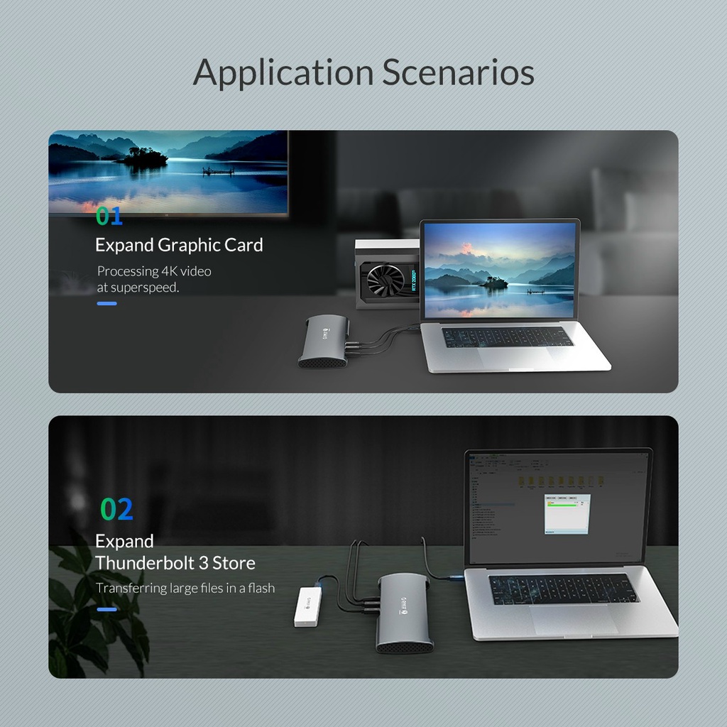Giới thiệu Bộ chuyển đổi Orico TB3-S1-GY 8 in 1 Thunderbolt 3 sang DP 8K 60hz USB 3.0 3.1 SD RJ45 cho máy Macbook Air Pro Dell
