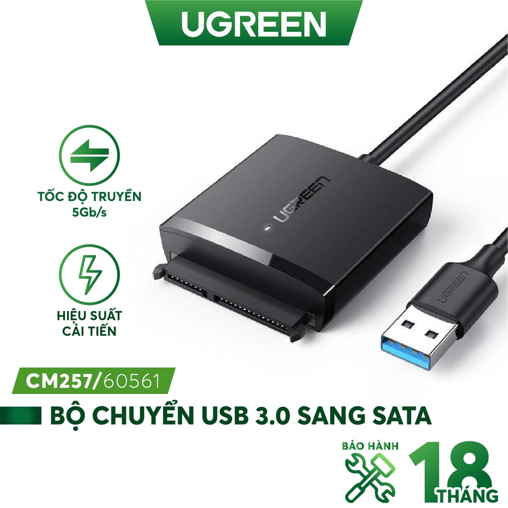 Máy tính & Laptop > Thiết Bị Lưu Trữ > USB & OTG || Bộ chuyển đổi ra ổ cứng và SSD SATA UGREEN CM257 Hỗ trợ chân cắm nguồn DC 5.5mm - Hàng phân phối chính hãngCòn hàng