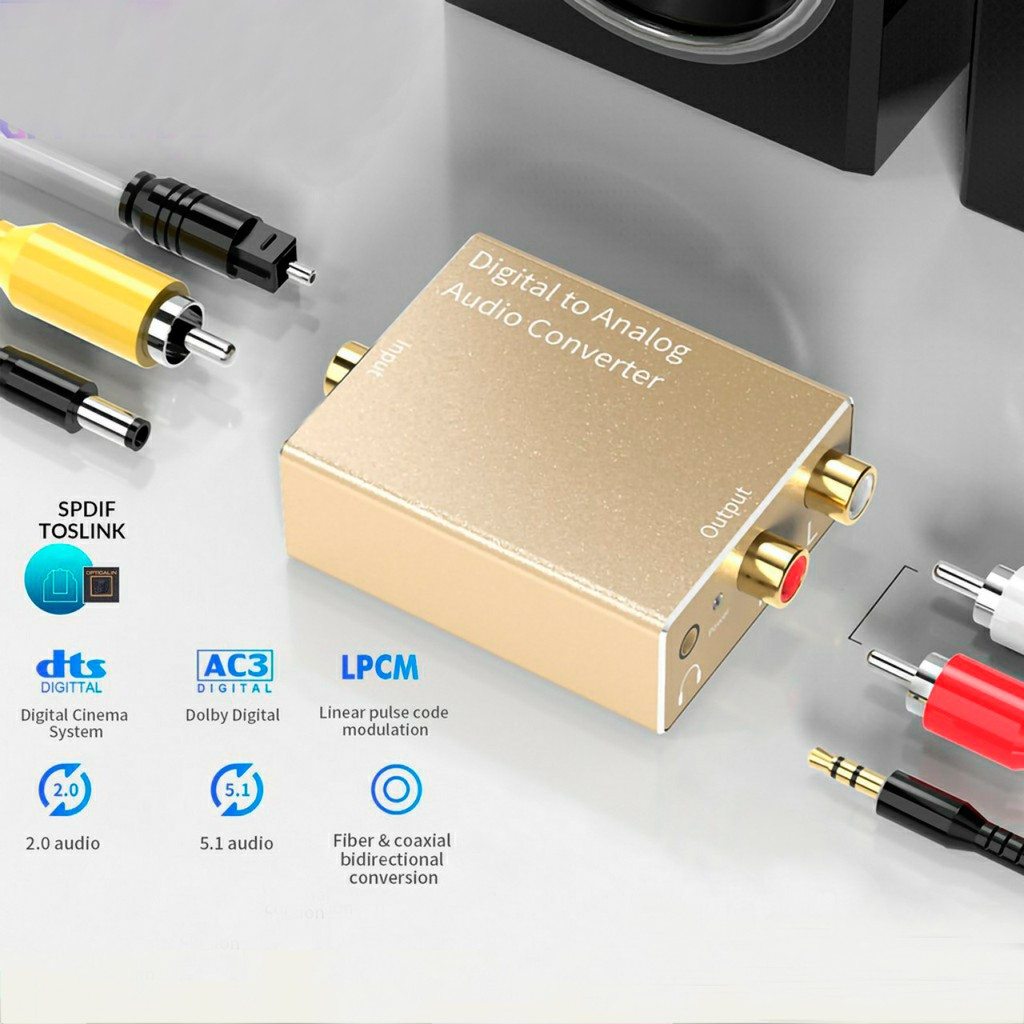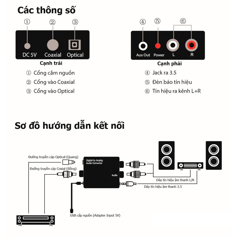 - Chuyển đổi từ tín hiệu Quang hoặc Coaxial sang Audio R/L