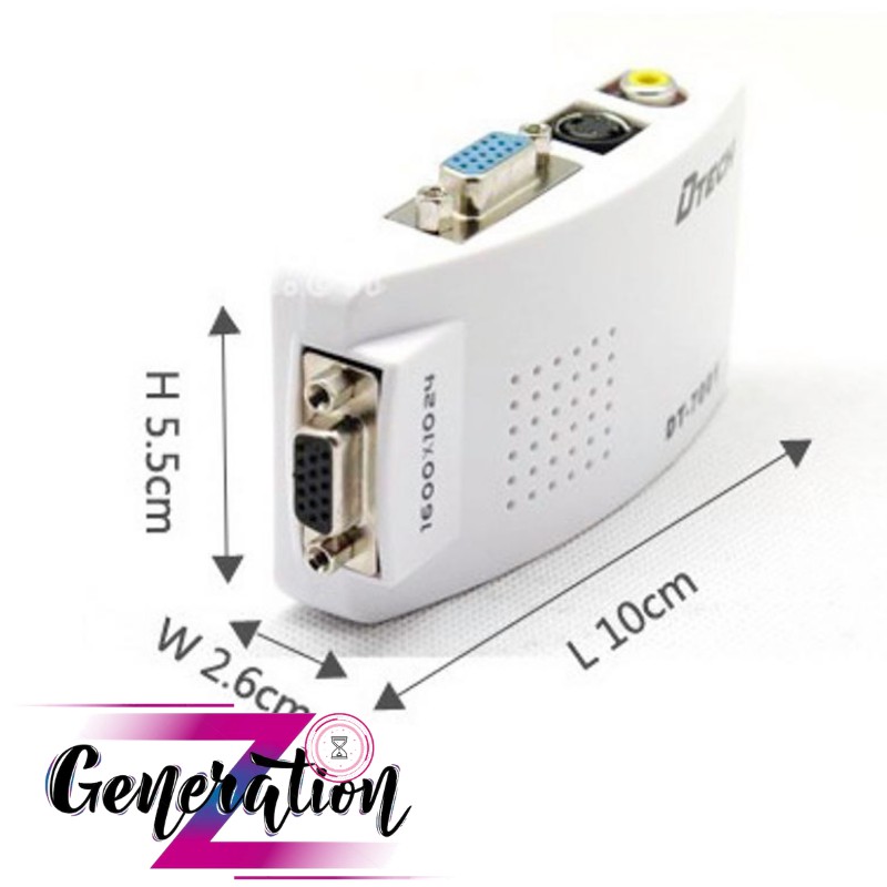 Bộ chuyển đổi tín hiệu PC VGA thànhTV .Từ đầu vào tín hiệu VGA qua bộ chuyểnđổi tạo ra 3 cổng 1 cổng Video, 1 cổng Svideo, v