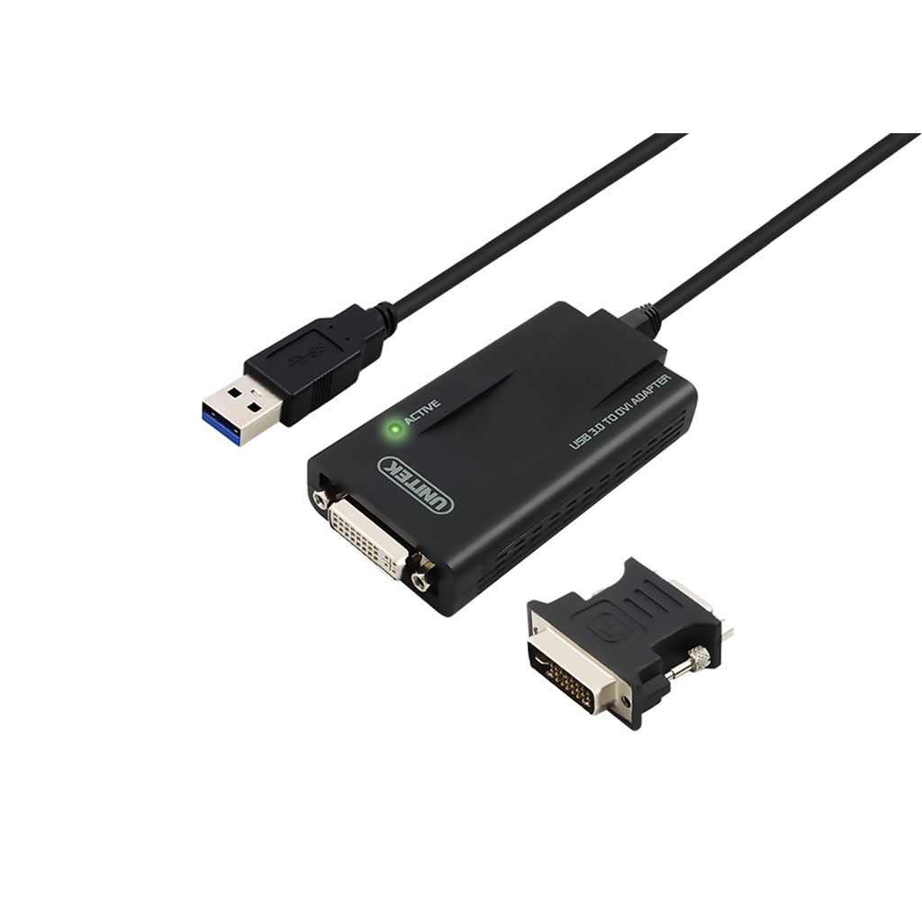Bộ chuyển đổi tín hiệu từ máy tính cổng usb 3.0 sang DVI I 24+5 đầu cái + đầu chuyển DVI i sang VGA lỗ Unitek Y3801
