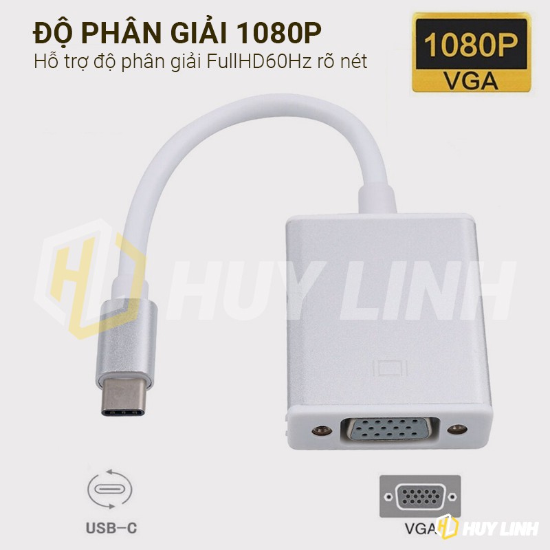 Máy tính & Laptop > Thiết Bị Lưu Trữ > USB & OTG || Bộ chuyển đổi tín hiệu USB Type C sang VGA FullHD 1080P - Type C to VGACòn hàng