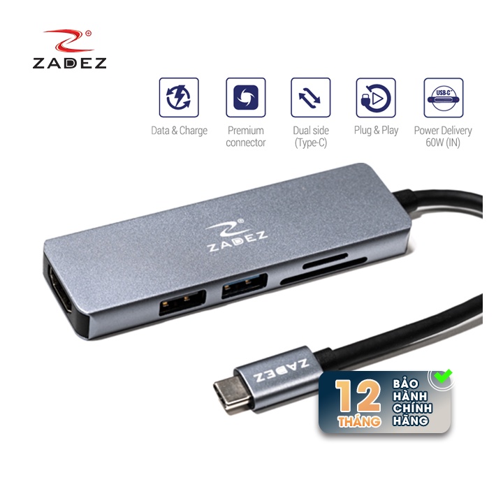 Máy tính & Laptop > Phụ Kiện Máy Tính > Bộ chia cổng USB & Đọc thẻ nhớ || Bộ chuyển đổi Type-C Hub ZADEZ ZAH-515 (5 trong 1)Còn hàng