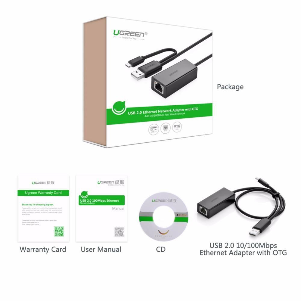 ✪ Bộ Chuyển Micro USB & USB 2.0 Ra LAN Cao Cấp UGREEN 30219 là cáp chuyển đổi USB 2.0 với mạng Lan RJ45 được sử dụng thay thế cổng mạng trên máy tính xách tay, PC... sử dụng cáp OTG để kết nối mạng Lan cho các thiết bị hỗ trợ OTG như máy tính bảng thông qua chuẩn Micro USB.