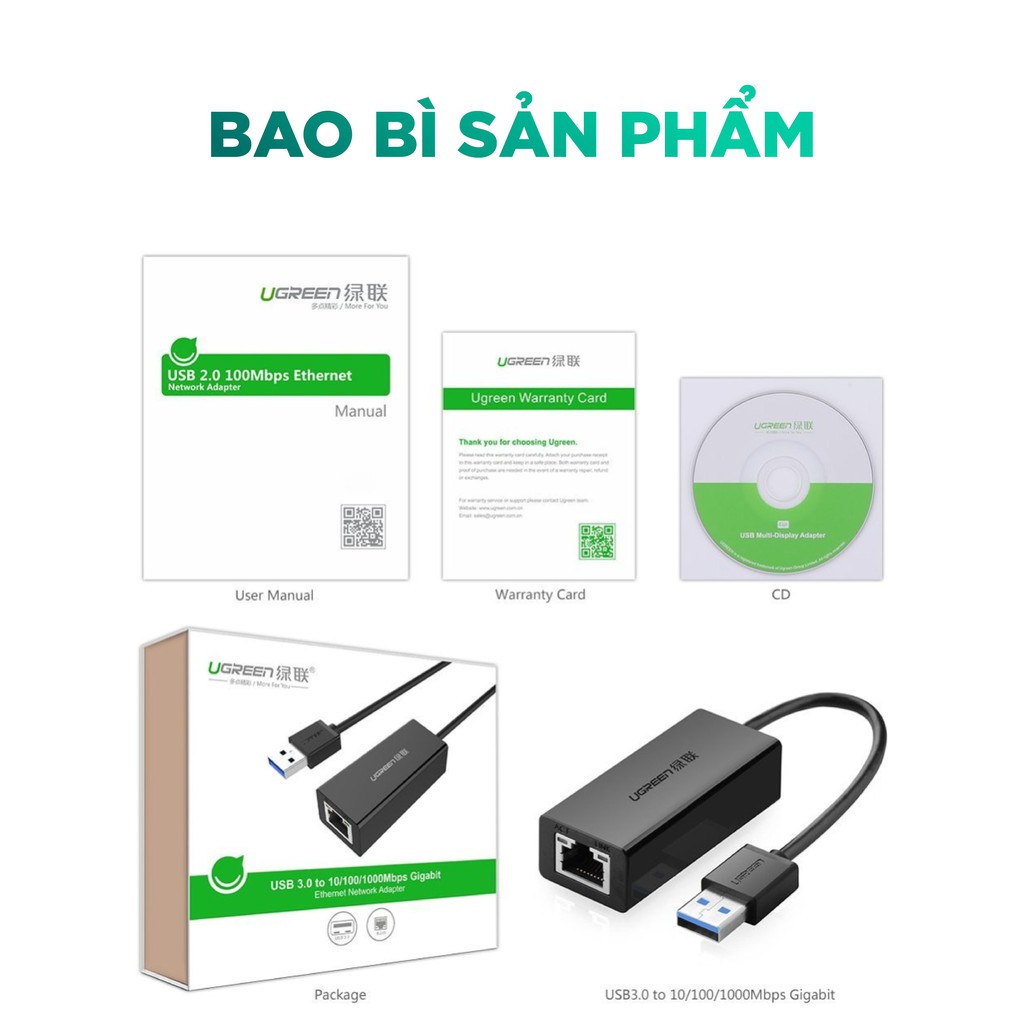 Máy tính & Laptop > Thiết Bị Lưu Trữ > USB & OTG || Bộ chuyển đổi USB 3.0 sang LAN 10/100/1000 Mbps UGREEN CR111 - Hàng phân phối chính hãng - Bảo hành 18 thángCòn hàng