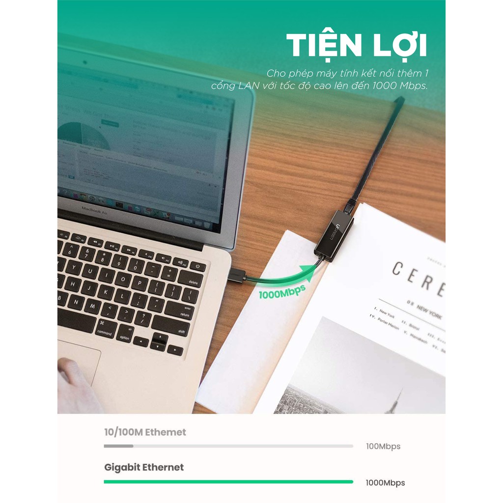 Giới thiệu Bộ chuyển đổi USB 3.0 sang LAN 10/100/1000 Mbps UGREEN CR111