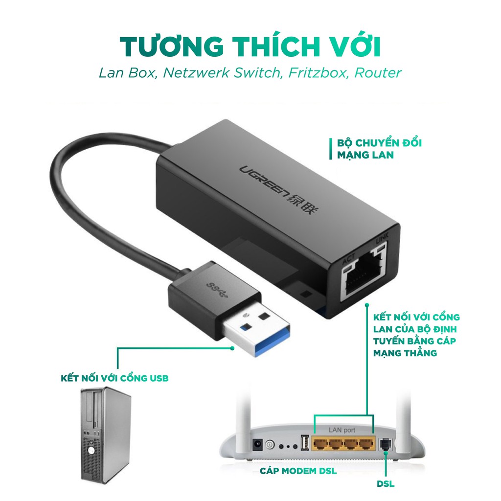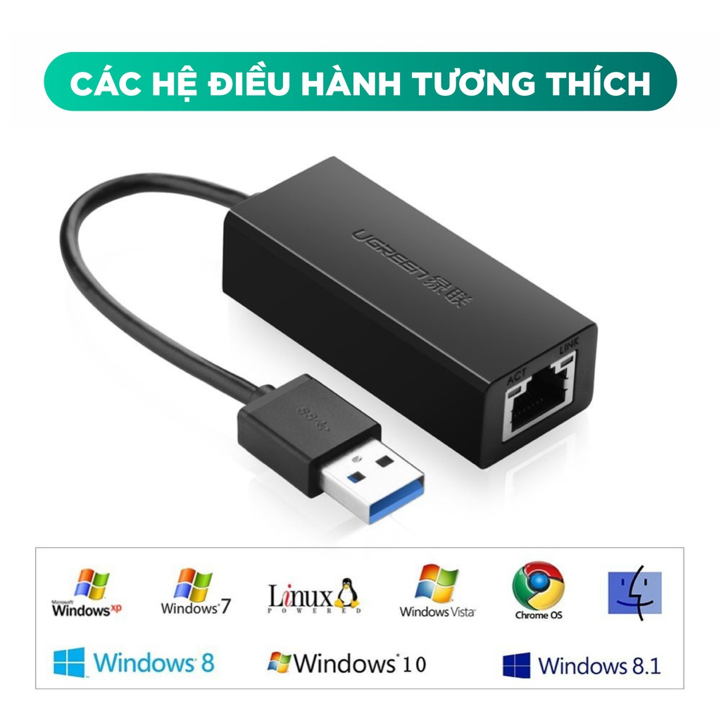Cáp USB 3.0 tốc độ cao sang card mạng Lan Gigabits chính hãng Ugreen CR111Kết nối trực tiếp TV BOX hay máy tính của bạn tới modem, router để có chất lượng ổn định nhất