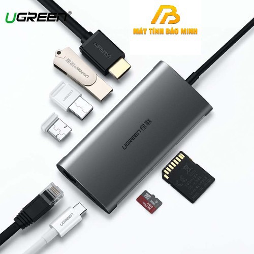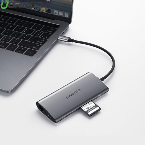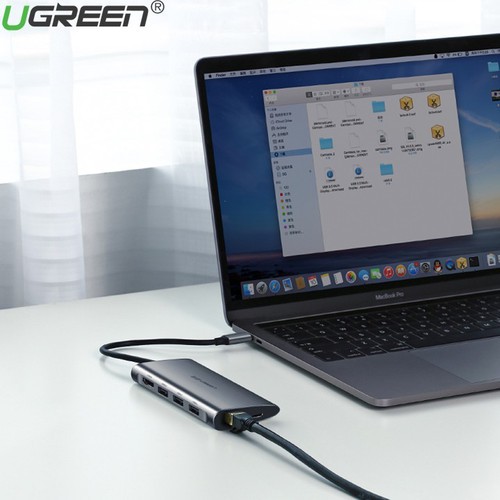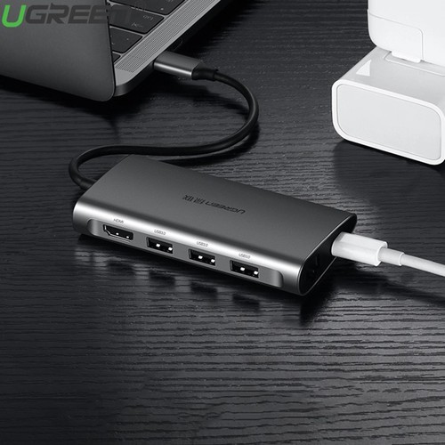 - Bộ Hub USB-C chuyển đổi đa năng Ugreen 50538 từ USB type C sang HDMI + USB 3.0 và Lan Gigabit 100/1000Mbps và hỗ trợ chức năng thẻ nhớ SD và có cổng sạc USB type-C cho máy tính của các bạn.