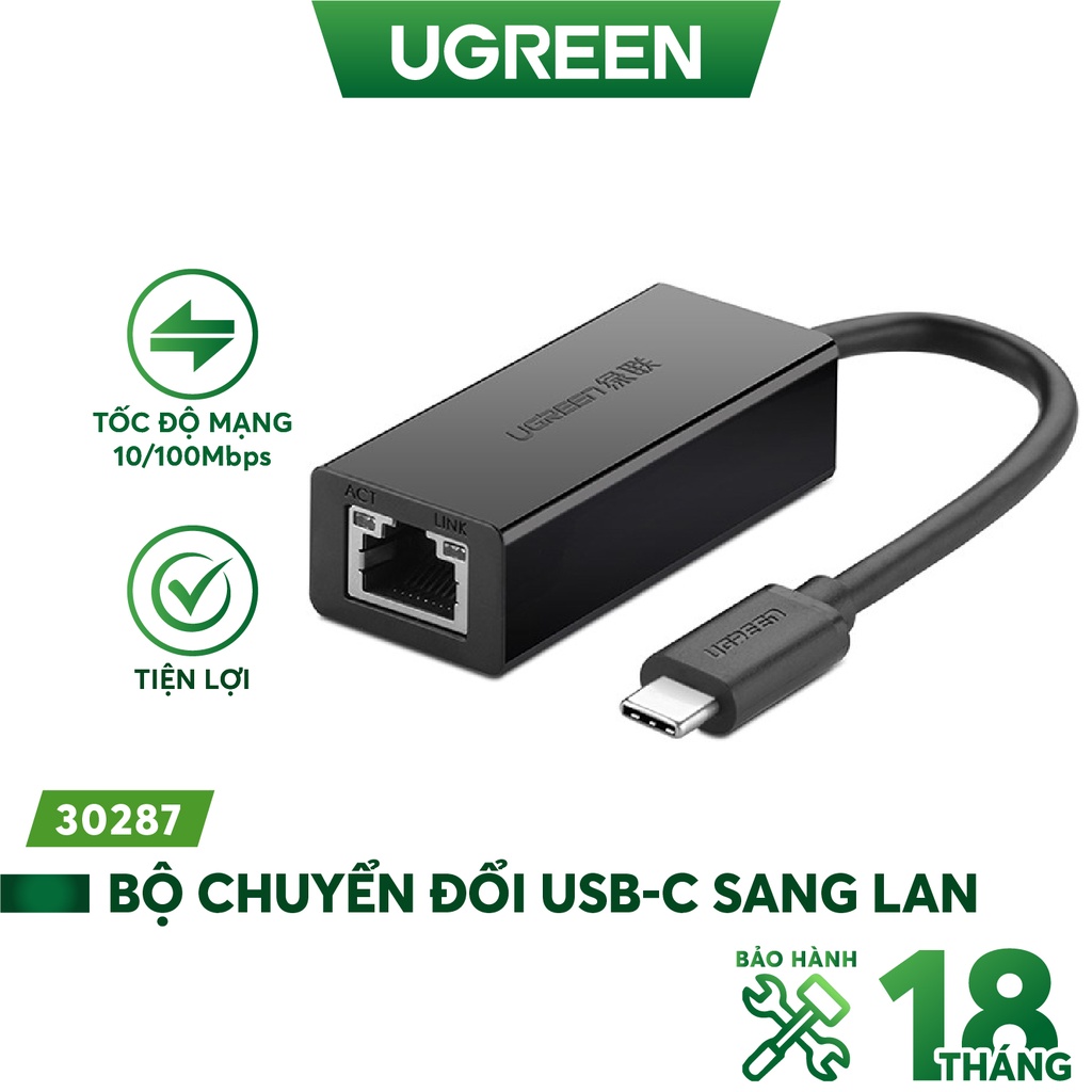 Máy tính & Laptop > Thiết Bị Lưu Trữ > USB & OTG || Bộ chuyển đổi USB Type C san LAN 10/100 Mbps Ethernet UGREEN 30287 (màu đen)Còn hàng