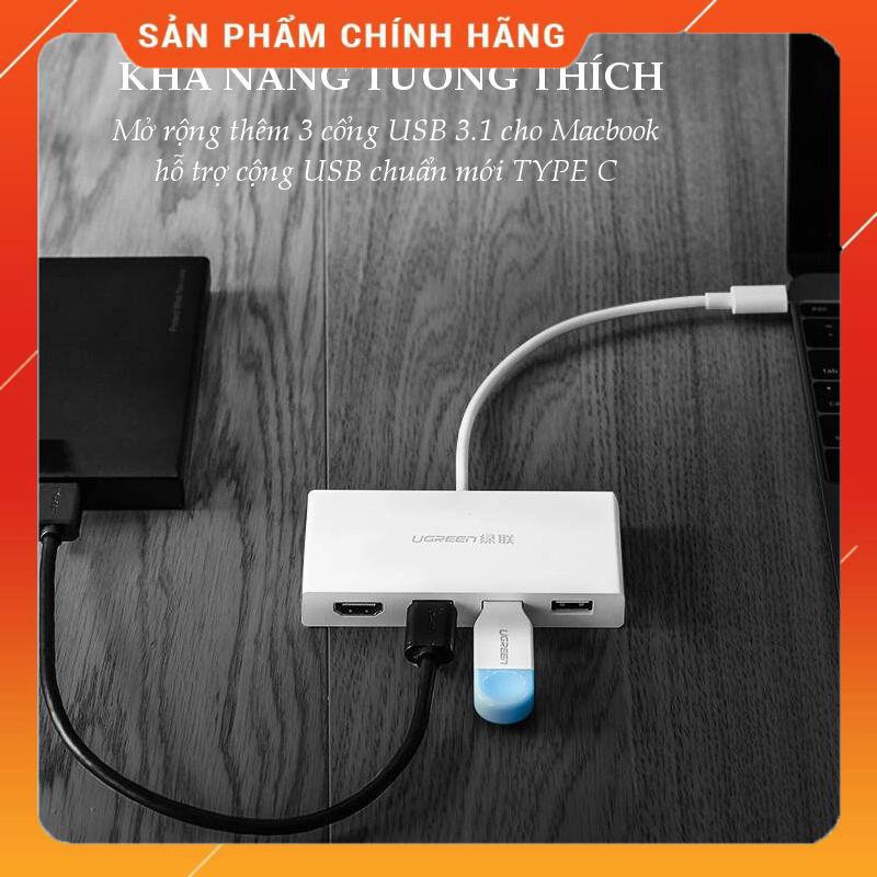 Bộ chuyển đổi USB TypeC sang HDMI và Hub USB 3.1 dài 15cm UGREEN 40374 dailyphukien