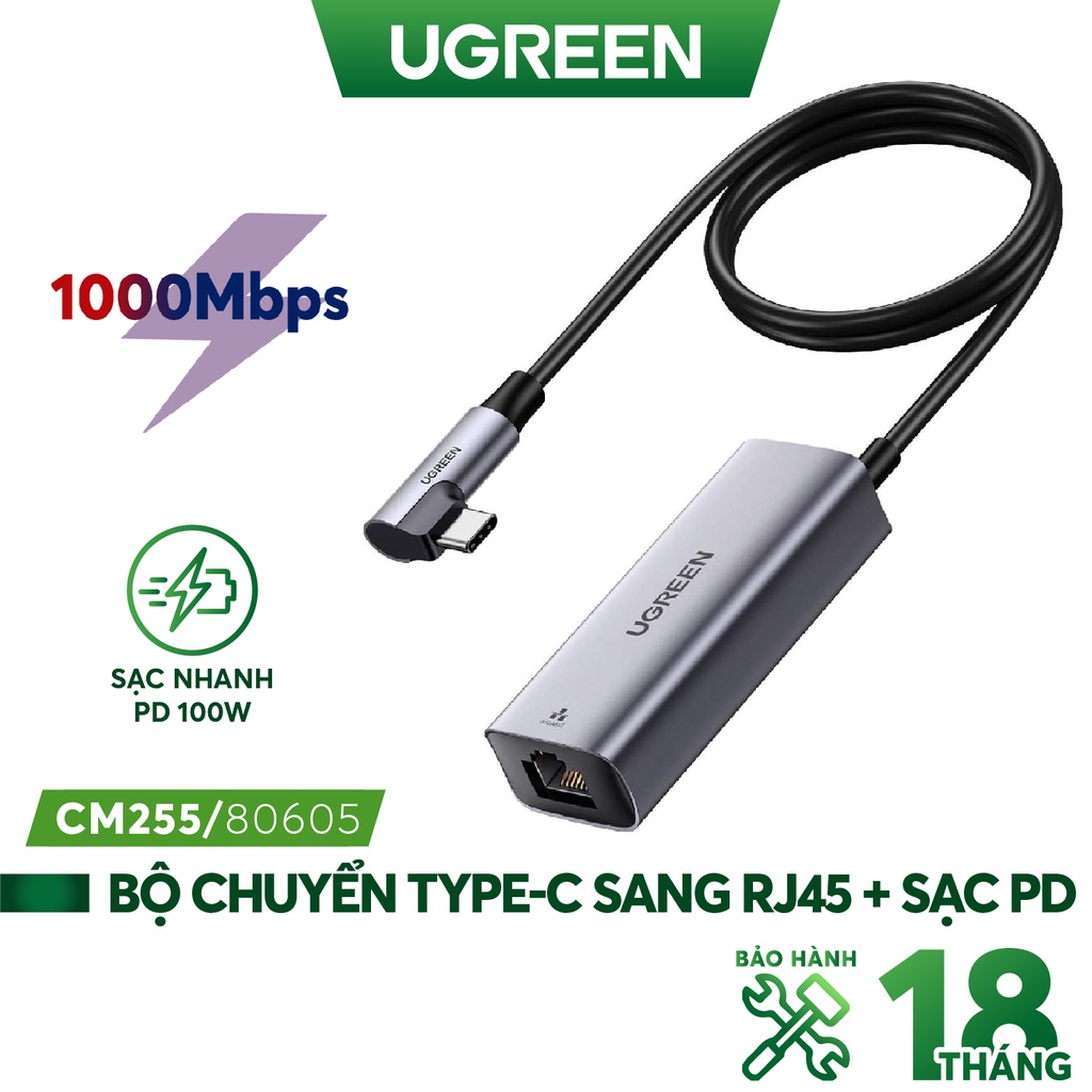 Bộ chuyển đổi USB Type C sang LAN 10/100 Mbps Ethernet và cổng sạc Type-C PD 100W UGREEN 80605 - Hãng phân phối chính thứcTHỜI GIAN GIAO HÀNG SIÊU TỐC ĐỘ