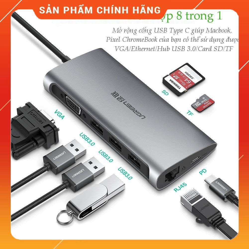 Bộ chuyển đổi USB Type-C sang VGA/Ethernet/Hub USB 3.0/Card SD/TF UGREEN 50539 dailyphukien