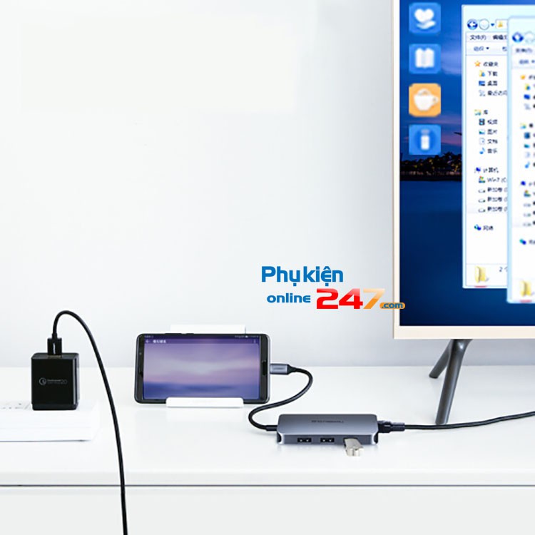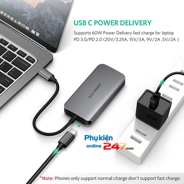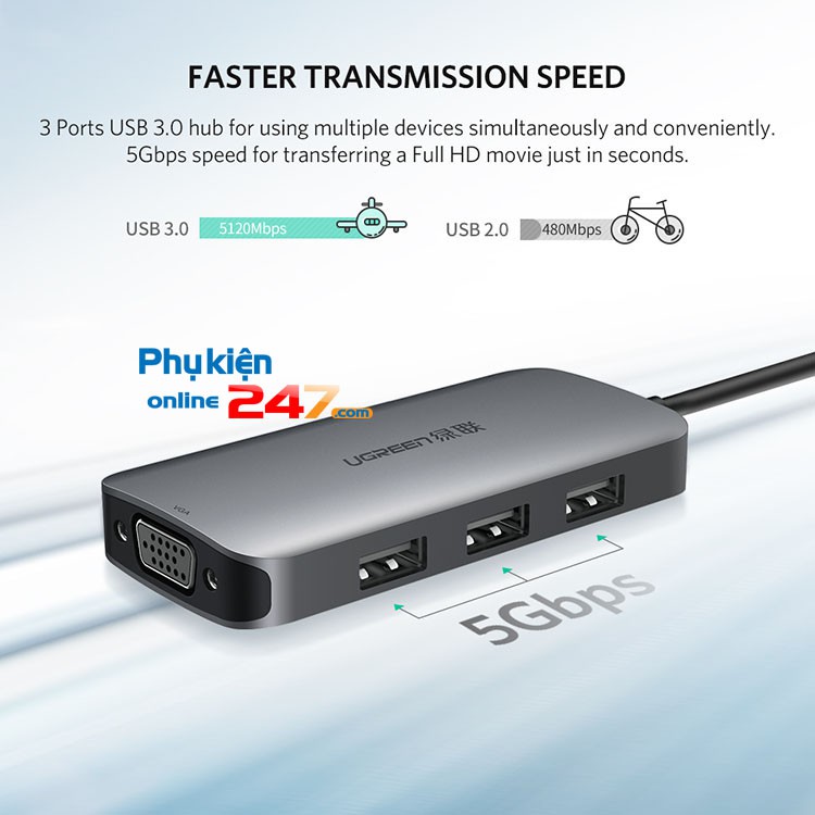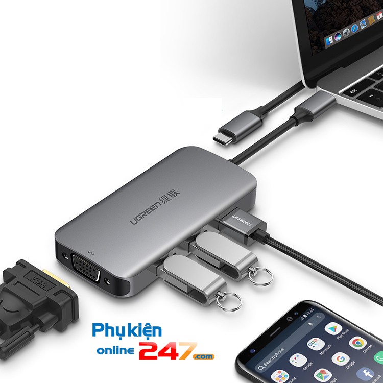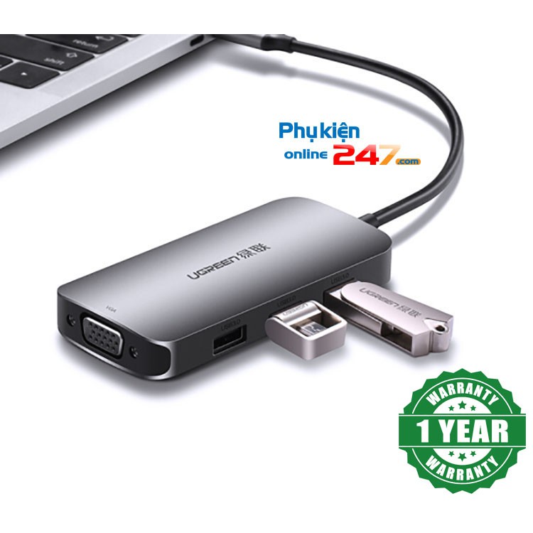 💥 Ugreen Adapter USB-C 5 trong 1 chính hãng. Chuyển đổi cổng 𝐔𝐒𝐁-𝐂 (𝐭𝐡𝐮𝐧𝐝𝐞𝐫𝐛𝐨𝐥𝐭 𝟑 trên 𝐌𝐚𝐜𝐛𝐨𝐨𝐤) ra VGA và 3 cổng USB 3.0, hỗ trợ sạc thiết bị USB-C PD.