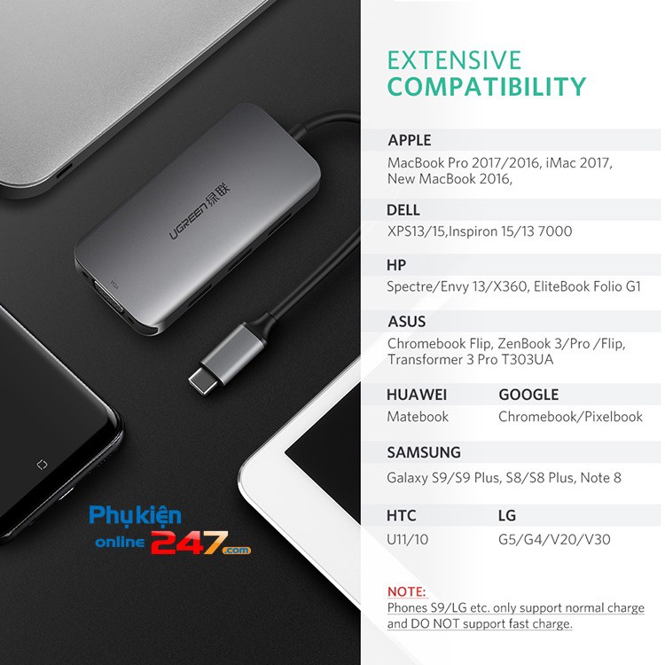 ✍️ Hỗ trợ 1 x cổng USC-C power delivery dùng để sạc cho thiết bị. Cấp dòng diện từ 5V-20V, có chipset thông minh tự điều chỉnh dòng điện phù hợp với thiết bị.