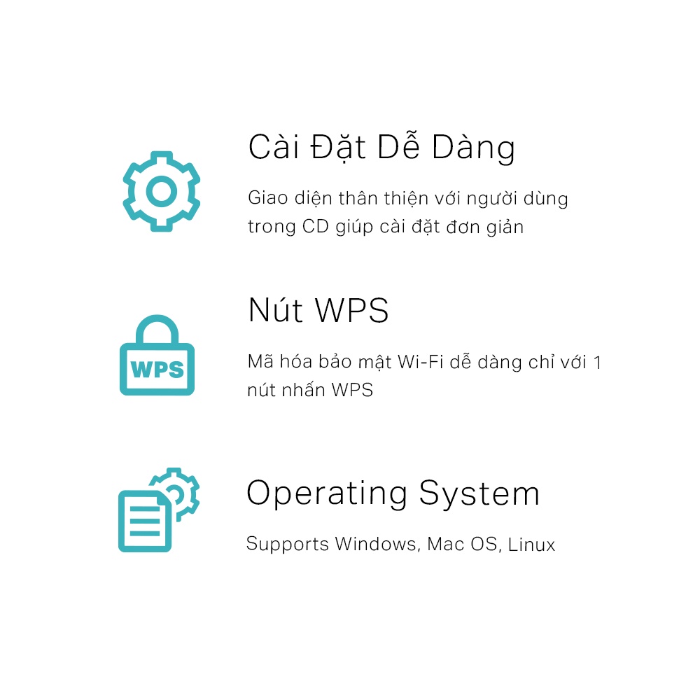- Tốc độ truyền dữ liệu Wi-Fi lên tới 150Mbps, lý tưởng cho việc xem video trực tuyến hoặc gọi điện thoại qua internet