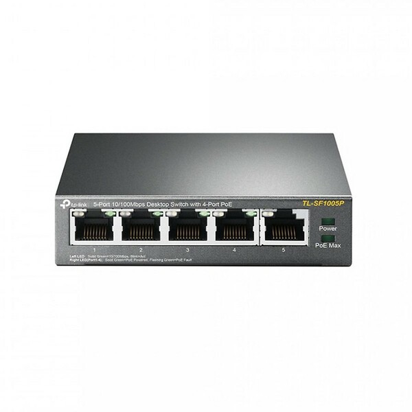 5 cổng RJ45 10 / 100MbpsVới bốn cổng PoE, truyền dữ liệu và nguồn trên một cáp đơn.