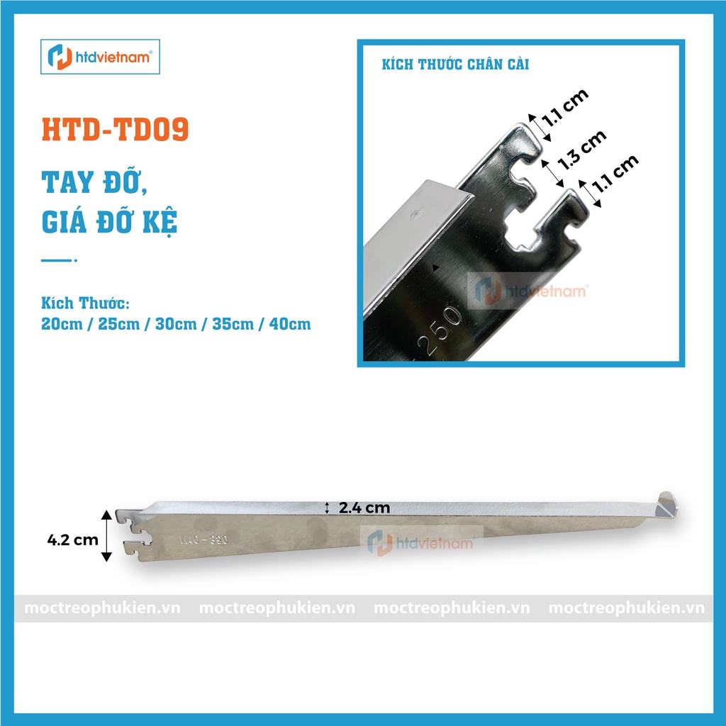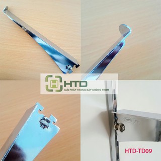 Tay đỡ kệ kính móc trên thanh ray gắn tường, có móc cong phía đầu để ôm kínhTAY ĐỠ, GIÁ ĐỠ KỆ: HTD-TD09