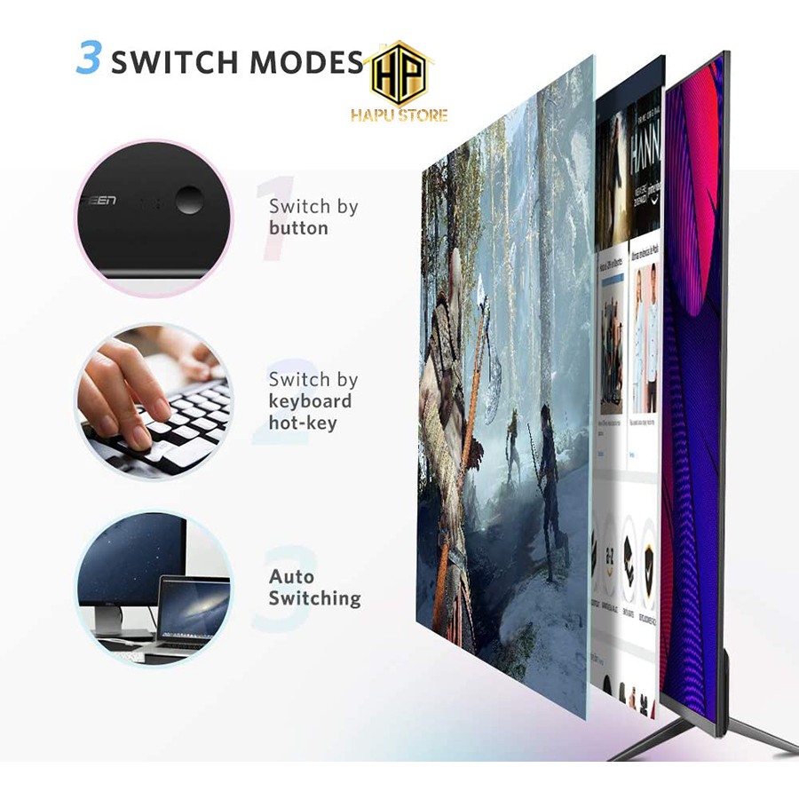 [Mã 254ELSALE giảm 7% đơn 300K] Bộ chuyển KVM Switch 2 vào 1 ra Ugreen 50744 chuẩn HDMI màu đen chính hãng - Hapustore
