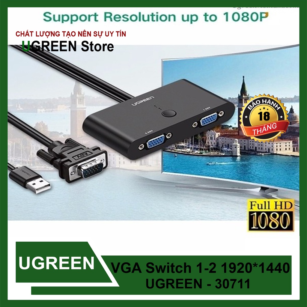 Thông Số Kỹ Thuật Bộ chuyển mạch / Bộ Chia VGA 2 Máy Tính Chung 1 Màn Hình Ugreen 30711 Cao Cấp