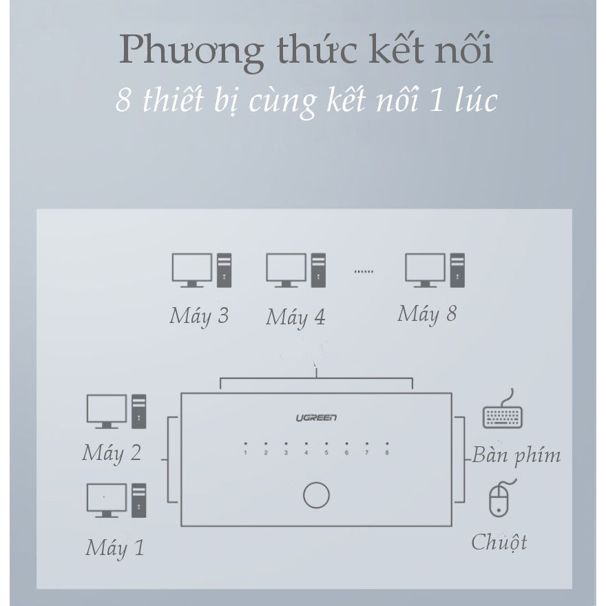 Máy tính & Laptop > Thiết Bị Mạng > Bộ Chuyển Mạch KMV || Bộ chuyển mạch KVM UGREEN CM229 60102 bộ chuột & bàn phím điều khiển đồng bộ 8 máy tínhCòn hàng