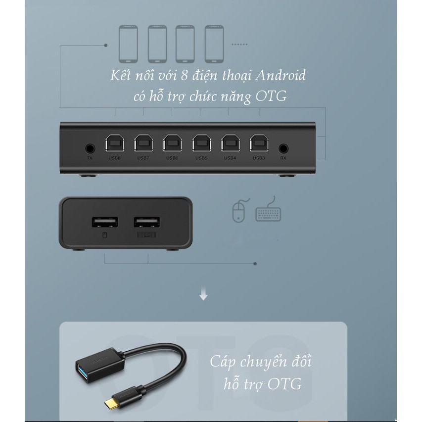 [Mã ELMALL10 giảm 10% đơn 500K] Bộ chuyển mạch KVM UGREEN CM229 60102 bộ chuột & bàn phím điều khiển đồng bộ 8 máy tính