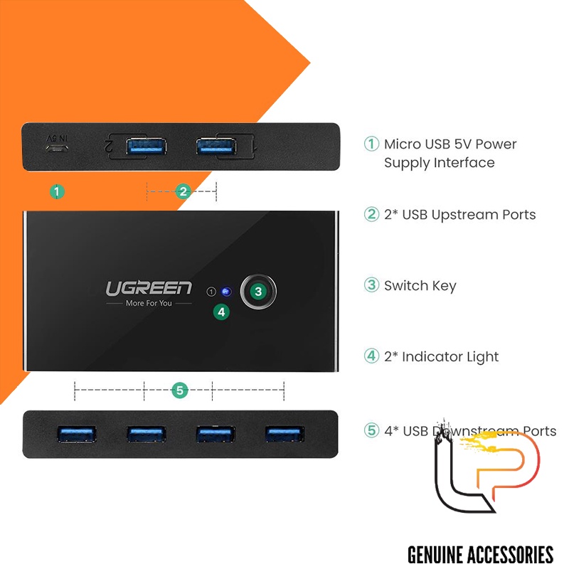 Bộ chuyển mạch (Switch) 2 cổng USB 3.0 chia sang 4 cổng USB 3.0 Ugreen 30768