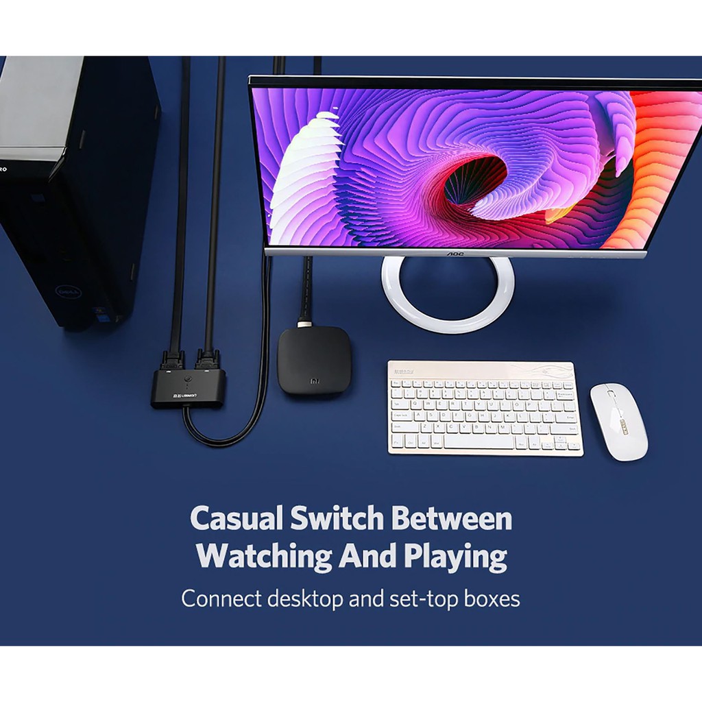 - Ugreen 30711 bao gồm hai tính năng, vừa là Bộ chia VGA 1 ra 2 giúp chia sẻ đồng bộ hình ảnh từ một máy tính đến 2 màn hình, hoặc dùng chung một màn hình cho hai thiết bị như một bộ gộp vga cao cấp.