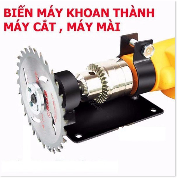 Bộ chuyển máy khoan thành máy cắt, máy mài bàn là một trong những sản phẩm thuộc dòng dụng cụ tiện ích, chuyển đổi chức năng khoan rất hiệu quả. Công dụng chủ yếu là dùng bắt khoan vào phụ kiện để mở rộng chức năng cắt và mài. Biến máy khoan thành máy mài, cắt, cưa...Phù hợp với hầu hết dòng máy khoan điện, pin cầm tay.