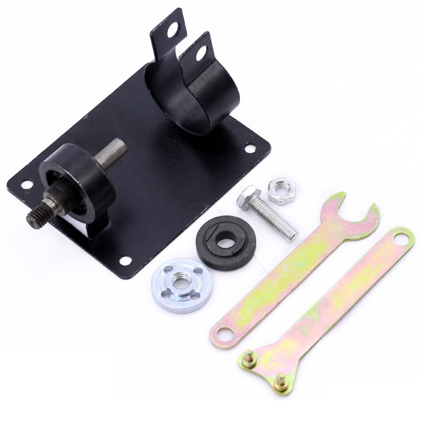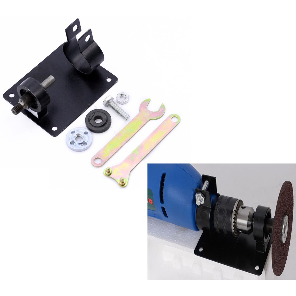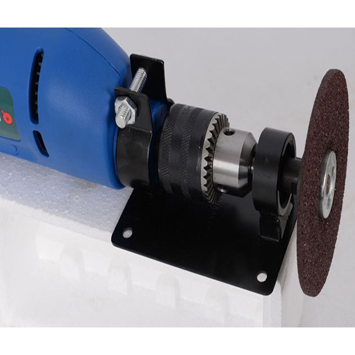 - Bộ Chuyển Máy Khoan Thành Máy Cắt dùng để chuyển máy khoan cầm tay thành máy cưa – mài - cắt.- Sản phẩm bao gốm giá đỡ, 2 kẹp đĩa đen – trắng, bộ cờ lê tháo lắp.